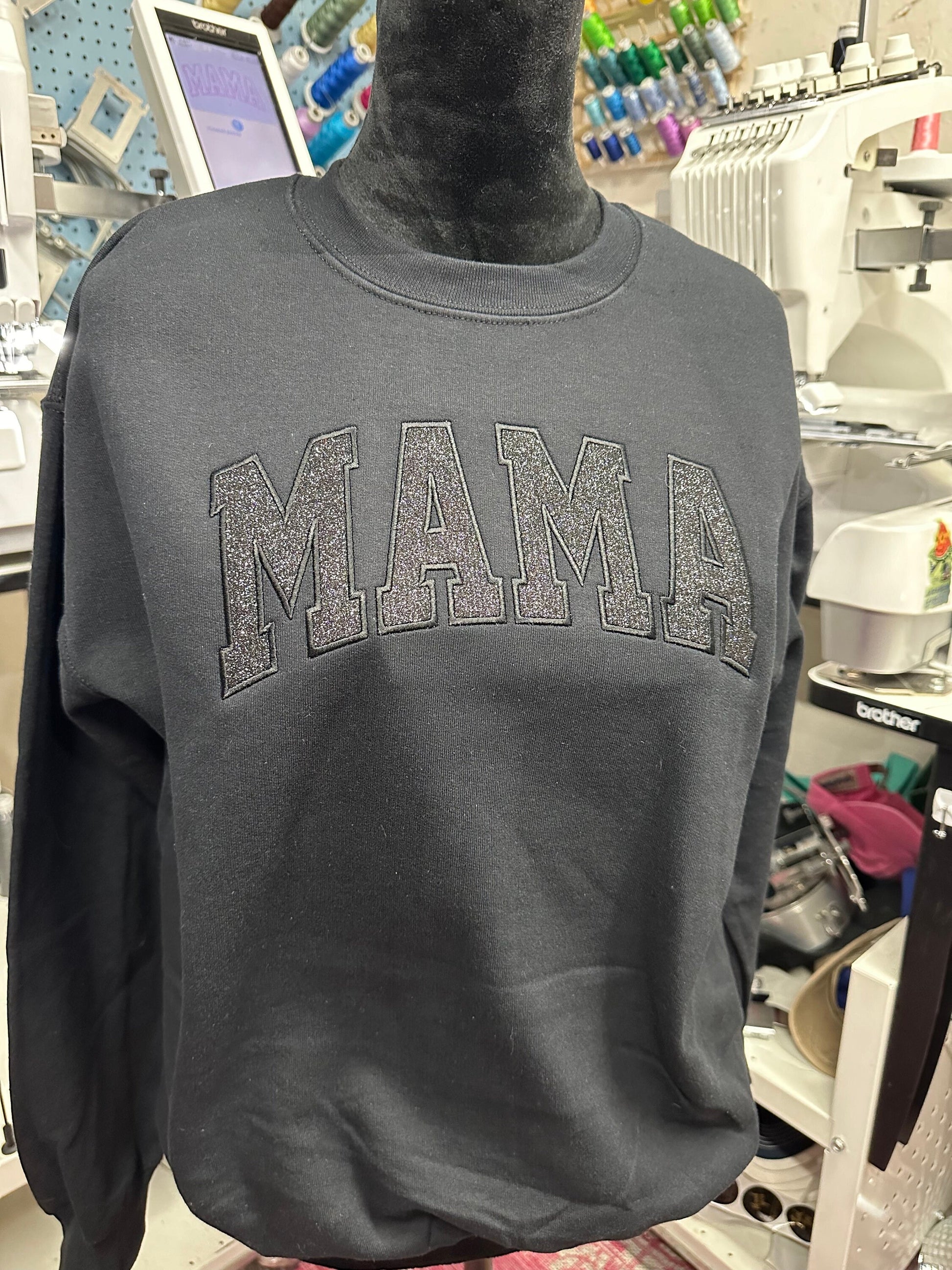Embroidered glitter vinyl Mama sweatshirt - Appliqué Mama sweatshirt - Mama gift - personalize mama crewneck - personalized embroidery gift